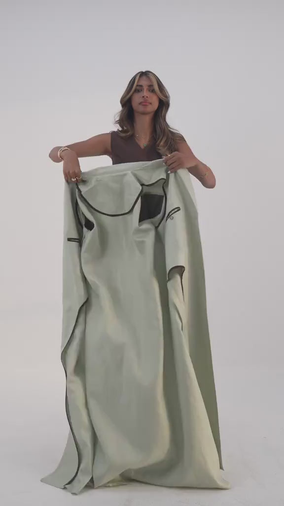 The blazer abaya is a tailored piece crafted from a twill linen blend in a soft neutral tone. This blazer abaya features a clean open front and structured lapels, offering a refined silhouette. With statement buttons on the front and sleeve cuffs, the blazer abaya adds a polished touch to any look. Practical side flap pockets and hidden inner pockets make the blazer abaya as functional as it is stylish. The breathable fabric ensures comfort throughout the day. Whether for work, formal outings, or everyday wear, the blazer abaya delivers timeless elegance.